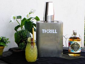 Put all the ingredients in a cocktail shaker with ice cubes and shake. Pour over the mix into a tiki mug with crushed ice, garnish with pineapple leaves, a lime wheel, chocolate bar & a straw, express the tincture & enjoy responsibly! Remember to clean your glass & your equipment with Thrill!